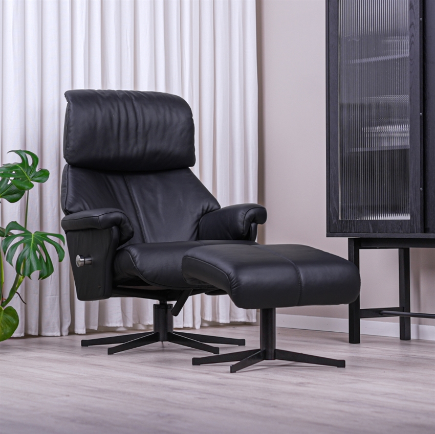 Calibra Lænestol Inkl Skammel Sort Læder Bd Mobel Sneaker er et must-have for enhver stilbevidst indretning. Denne lænestol kombinerer komfort og funktionalitet på bedste vis