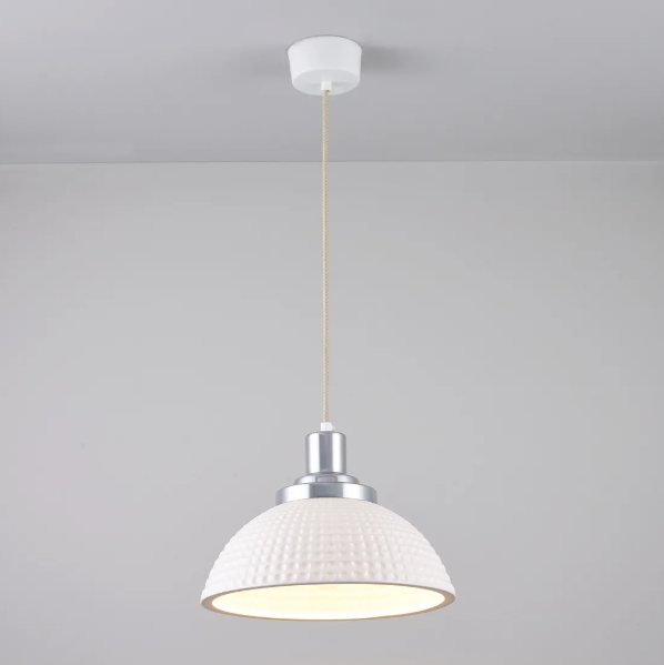 Vi har fundet Cosmo Pendel Porcelæn Prikket Porcelæn Original Btc Sneaker hos lamper4u i kategorien. Cosmo pendel i porcelæn fra Original BTC. Cosmo pendel i porcelæn fås med tre mønstre i skærmen. En glat overflade. En prikket og en stiblet. Stellet er krom og rosset er er i porcelæn ledningen er en stribet lys caramel brun. Skærmene er både smukke sluk