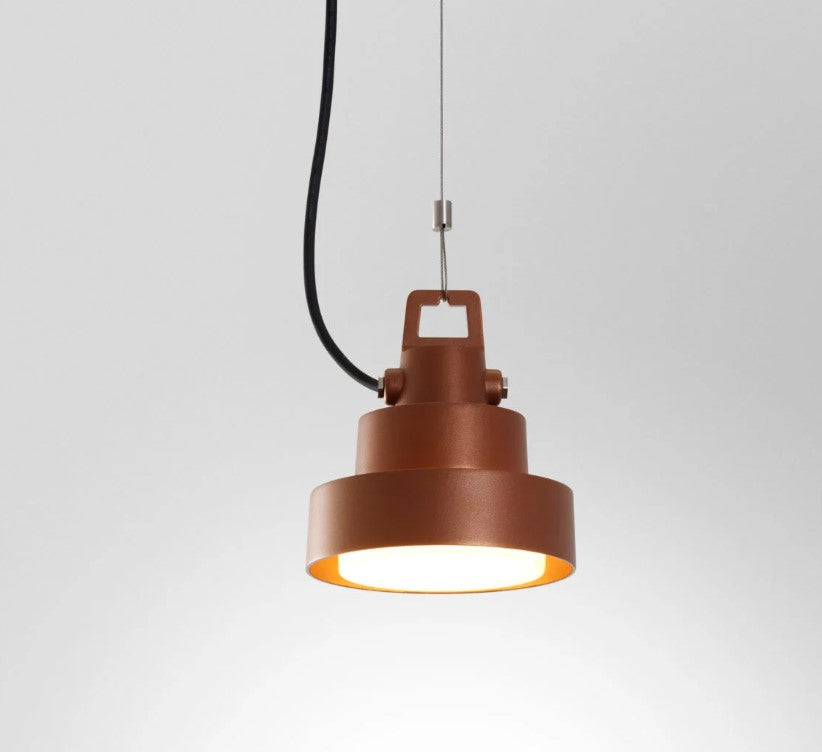 Lampens rustbrune farve tilføjer varme til ethvert rum. Mens baldakinen sikrer en nem installation. Plaff-On pendlen er perfekt til dem. Der værdsætter moderne design og kvalitet. Gør dit hjem lysere med denne smukke lampe fra Marset.